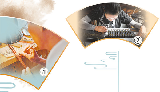 “尤其是择笔,主要工序由技工专司,格外讲究锋颖。”邱昌明是湖笔制作技艺国家级代表性传承人,他边介绍边演示着。只见他将笔头在干燥状态下散开,一手握住笔杆,一手拿着修理工具,迎着光线将没有锋颖的笔毛拣去,最终在放大镜下,每根毛料尖端1.5毫米处的“黑子”闪着玉色光泽。