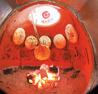 新鲜出炉的缙云烧饼。本报记者 窦皓摄