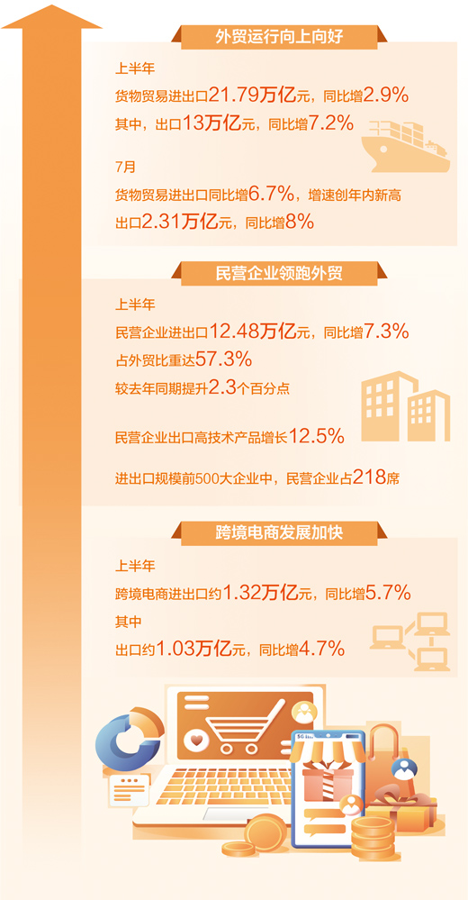 上半年,我国货物贸易进出口21.79万亿元,创历史同期新高;其中,民营企业进出口12.48万亿元,占我国外贸比重达57.3%。然而,在关税政策等因素的影响下,一些企业供应链调整滞后、库存管理承压。